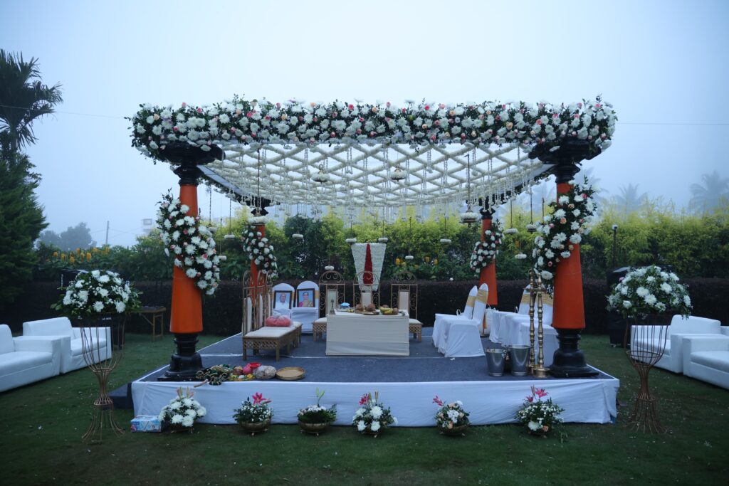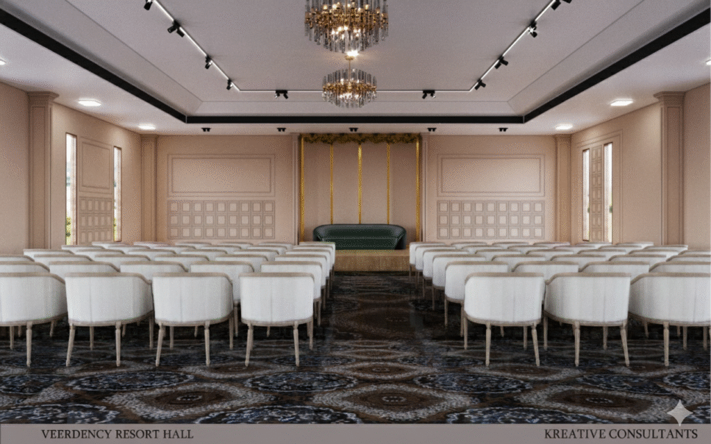 - 12,000 sq.ft. AC Banquet Hall: A magnificent, pillar-less hall that can be configured for a grand sit-down dinner or a lavish reception, fully air-conditioned for your guests’ comfort.