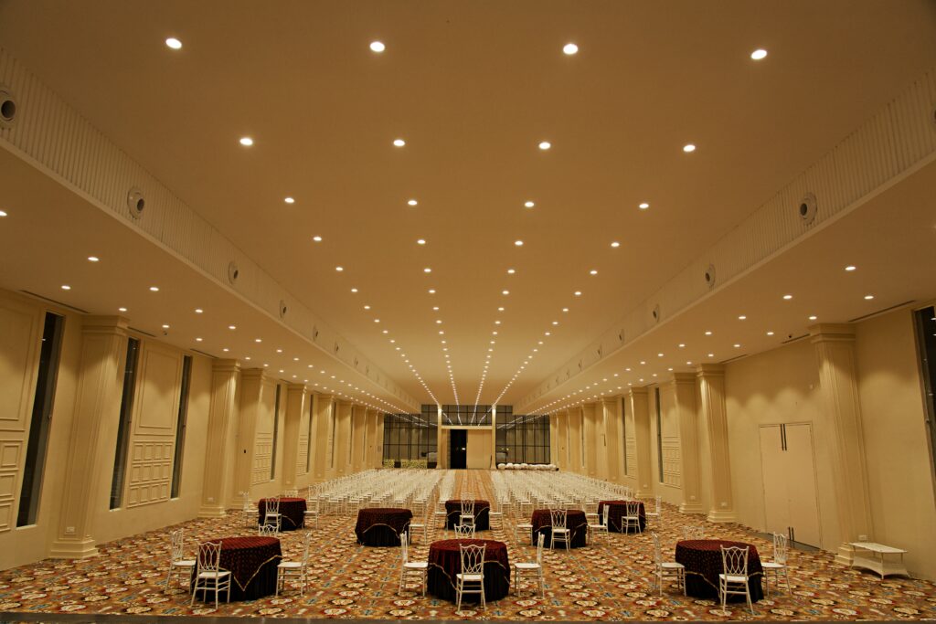 • ✅ 12,000 Sq. Ft. AC Banquet Hall: The crown jewel. Perfect for grand weddings, large corporate galas, and exhibitions. Features high ceilings and luxury interiors